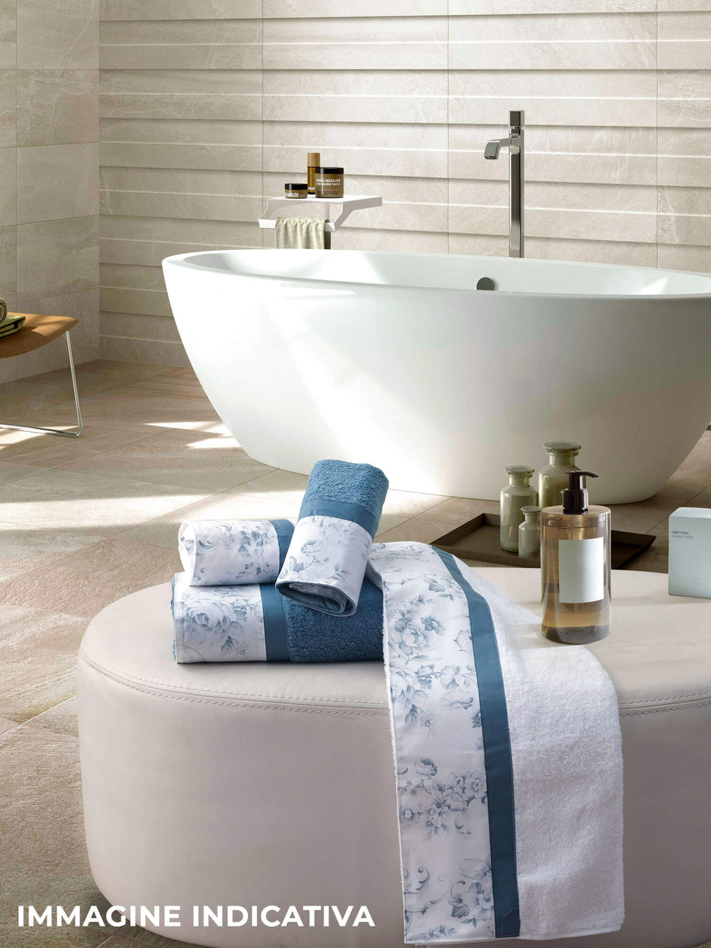 2 asciugamani viso + 2 asciugamani ospite in spugna di puro cotone 430 gr impreziositi da una balza di puro cotone. Tutti gli articoli presenti nel set sono realizzati e confezionati in Italia secondo la tradizione tessile artigiana Toscana.
