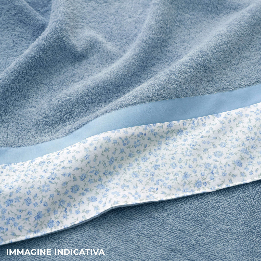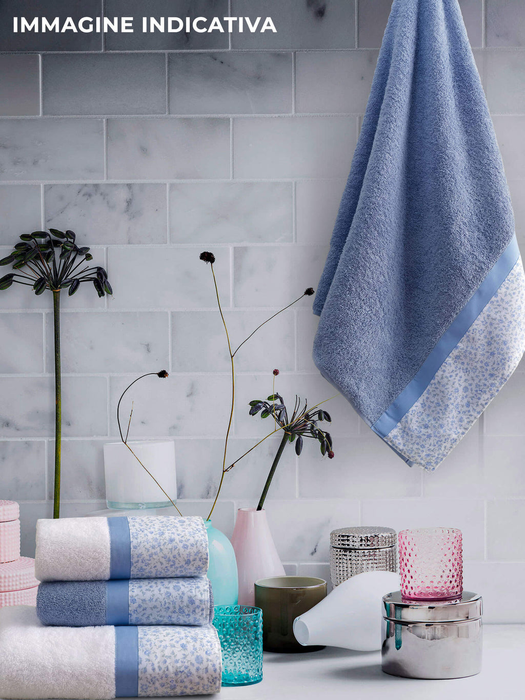 2 asciugamani viso + 2 asciugamani ospite in spugna di puro cotone 430 gr impreziositi da una balza in percalle stampato. Tutti gli articoli presenti nel set sono realizzati e confezionati in Italia secondo la tradizione tessile artigiana Toscana.