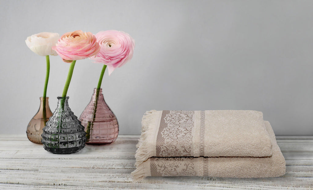 Set Spugna Asciugamani Ospite + Salvietta Kate Frangia Argento