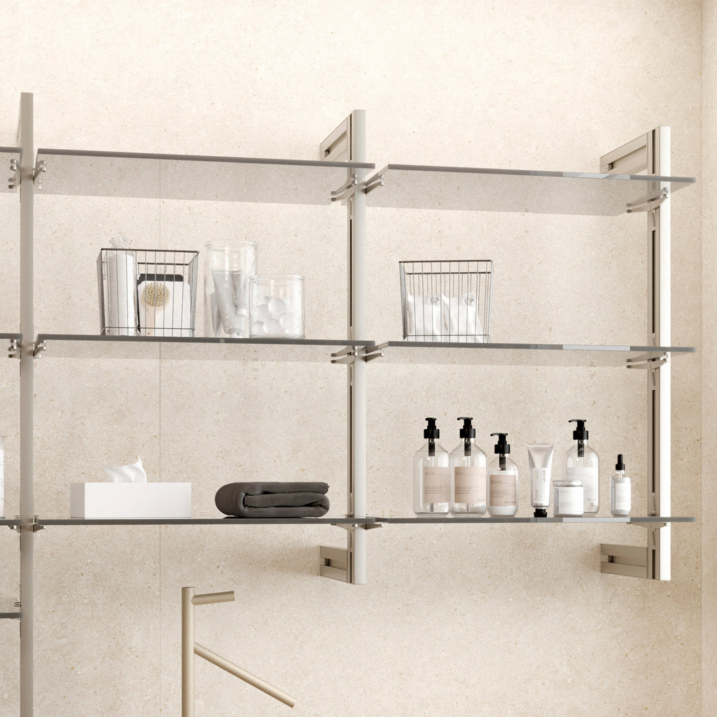 Profili e accessori Zero per scaffalature modulari. I profili sono realizzati in alluminio, e gli accessori di giunzione e i supporti in zamak. Grazie alla sua semplicità e al suo design, si può adattare velocemente il sistema Zero a qualsiasi tipologia di ambiente: casa, cabine armadio, ufficio e negozi. Si possono combinare diversi elementi per creare la tua composizione ideale: mensole in legno o vetro, moduli o piccoli contenitori e barre appendiabiti. Il sistema Zero si caratterizza per la sua facilità di montaggio, poiché non è necessario utilizzare alcun attrezzo per la regolazione. Regola e posiziona i ripiani senza dover smontare nulla e senza attrezzi speciali. Grande capacità di carico poiché può supportare più di 100 Kg per ripiano / modulo . Inoltre, con il suo innovativo sistema di fissaggio Zero, la sua forza di serraggio aumenta all'aumentare del peso che sostiene. Il fissaggio del profilo può essere effettuato mediante diverse forme di montaggio, fissaggio a parete, pavimento o soffitto o combinazioni di entrambi.I componenti del sistema Zero comprendono tutti gli accessori necessari per il montaggio.