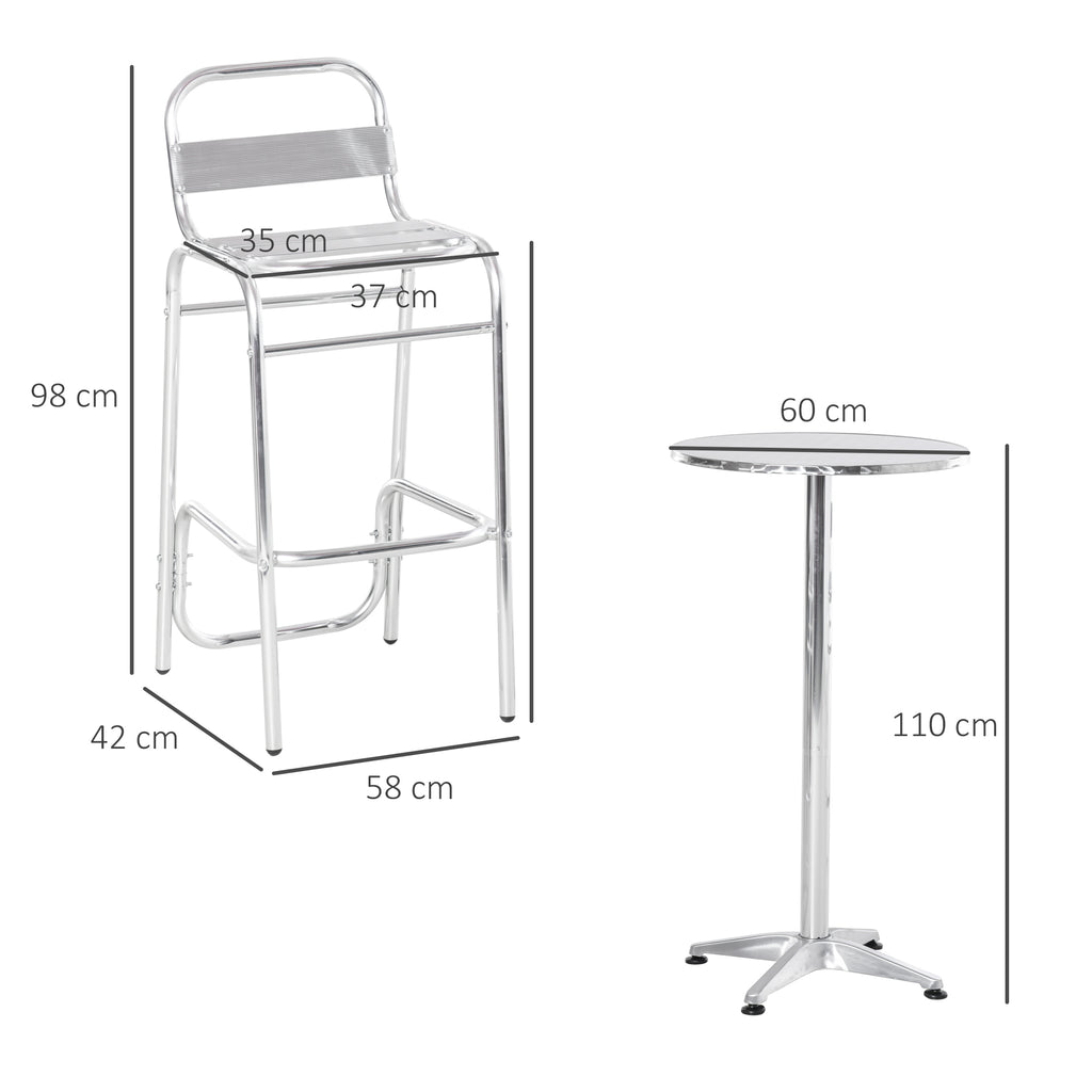Set Tavolino Alto e 2 Sgabelli da Giardino in Alluminio e Acciaio