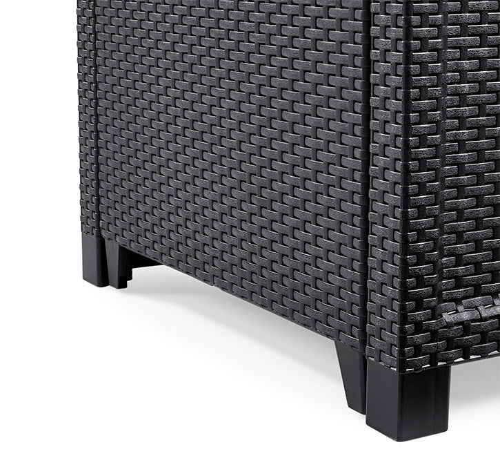 - Realizzato con materiale resistente e durevole, che richiama la finitura intrecciata del Rattan