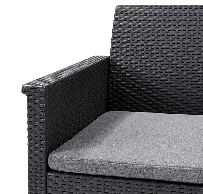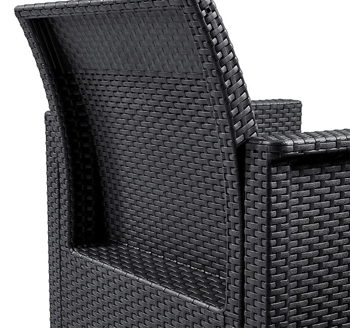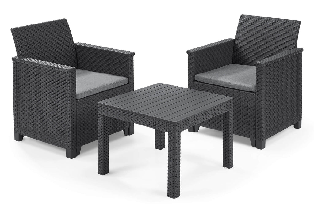 Set Tavolino e 2 Poltrone da Giardino Effetto Rattan Keter Emma Balcony Antracite