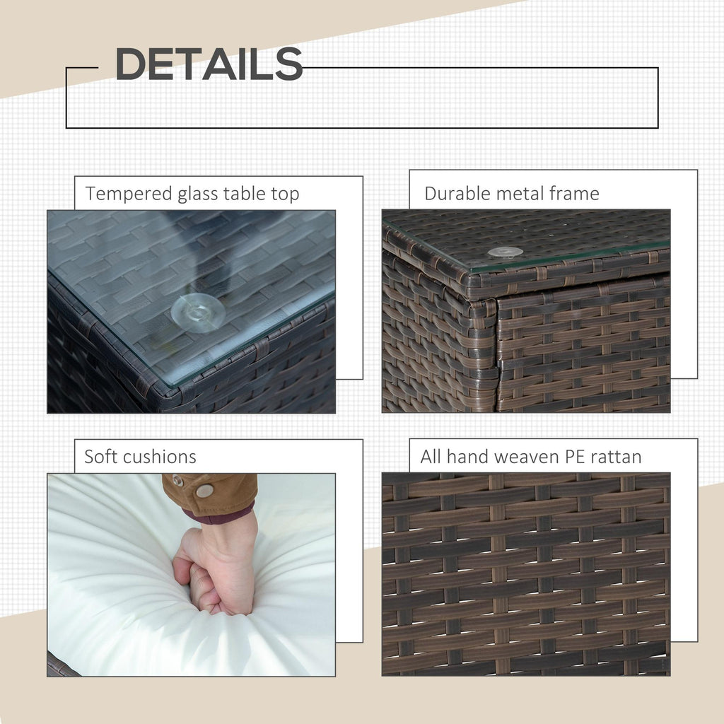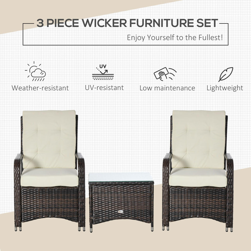 Set Tavolino e 2 Poltrone da Giardino in Rattan Polietilene Marrone e Crema