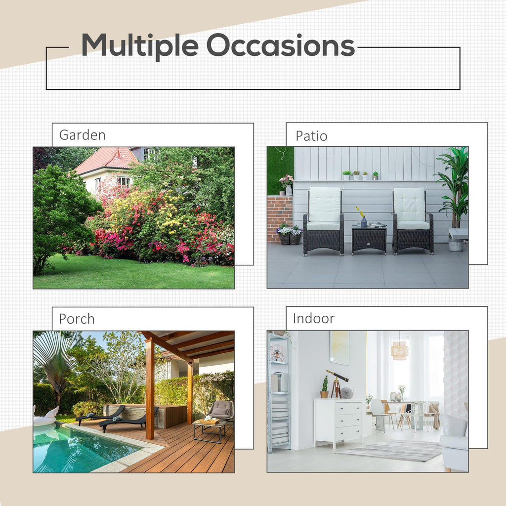 Il set da giardino è la soluzione perfetta per godersi i propri spazi all'aperto, dal giardino al balcone. Composto da un tavolino con sedie da giardino abbinate, questo salotto da esterni ha una robusta struttura in metallo con rivestimento in rattan PE anti-UV e resistente alle intemperie. I cuscini sfoderabili e lavabili hanno una morbida imbottitura, che assicura una seduta confortevole. È ora di vivere al meglio i propri spazi esterni con questo set!