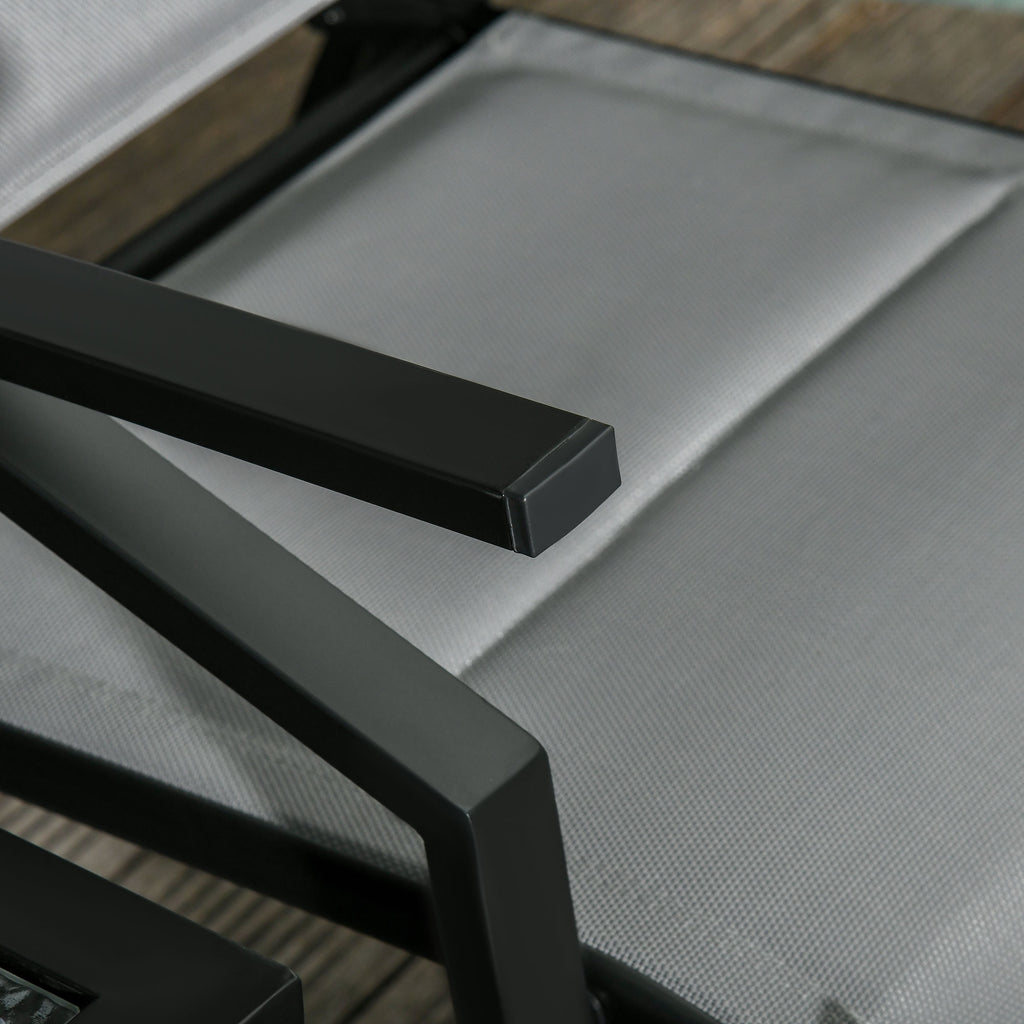 Set Tavolino e 2 Sdraio Reclinabili da Giardino Tessuto a Rete e Cotone Grigio Scuro