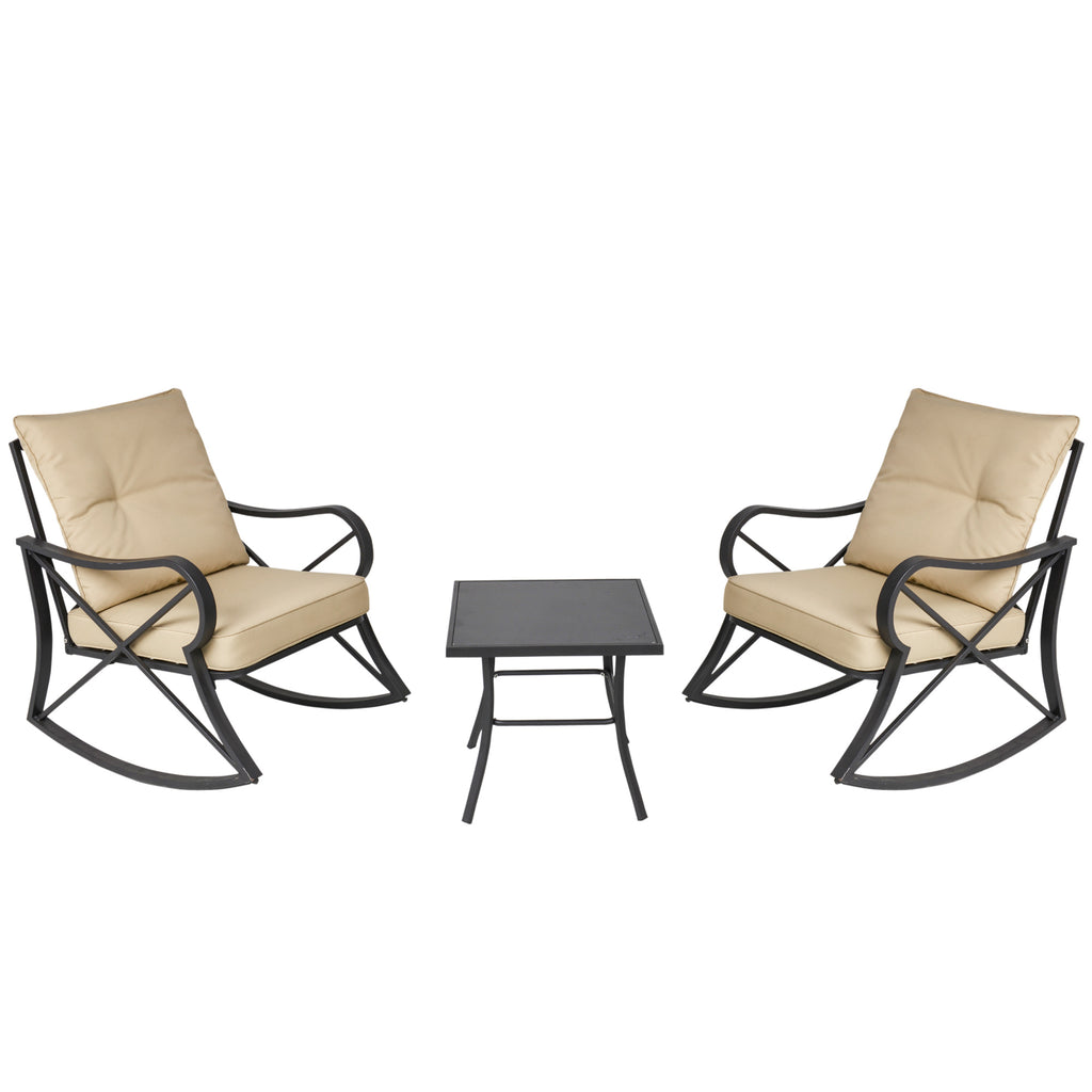 - SET DA GIARDINO DA 3 PEZZI: Il set tavolino con sedie da giardino ha uno stile elegante, è composto da 1 tavolo e 2 sedie a dondolo ed è adatto per la terrazza, il patio, il portico e in molti altri ambienti.