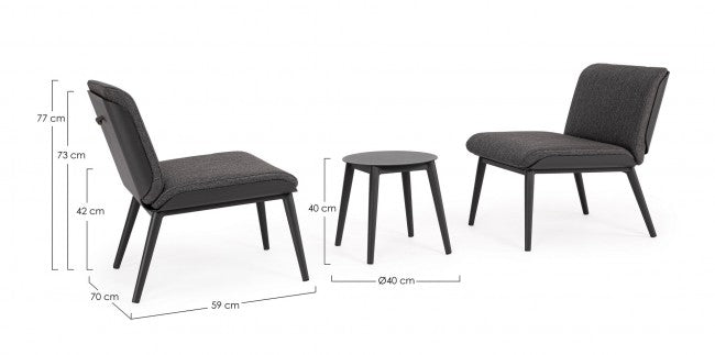 Set Tavolino e 2 Sedie da Giardino con Cuscini Isabela Antracite