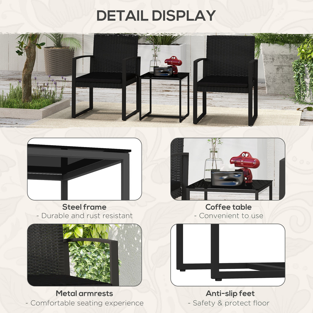 Set Tavolino e 2 Sedie da Giardino Effetto Rattan Nero