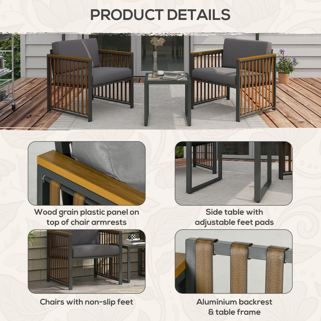 Set Tavolino e 2 Sedie da Giardino in Acciaio e Rattan Grigio