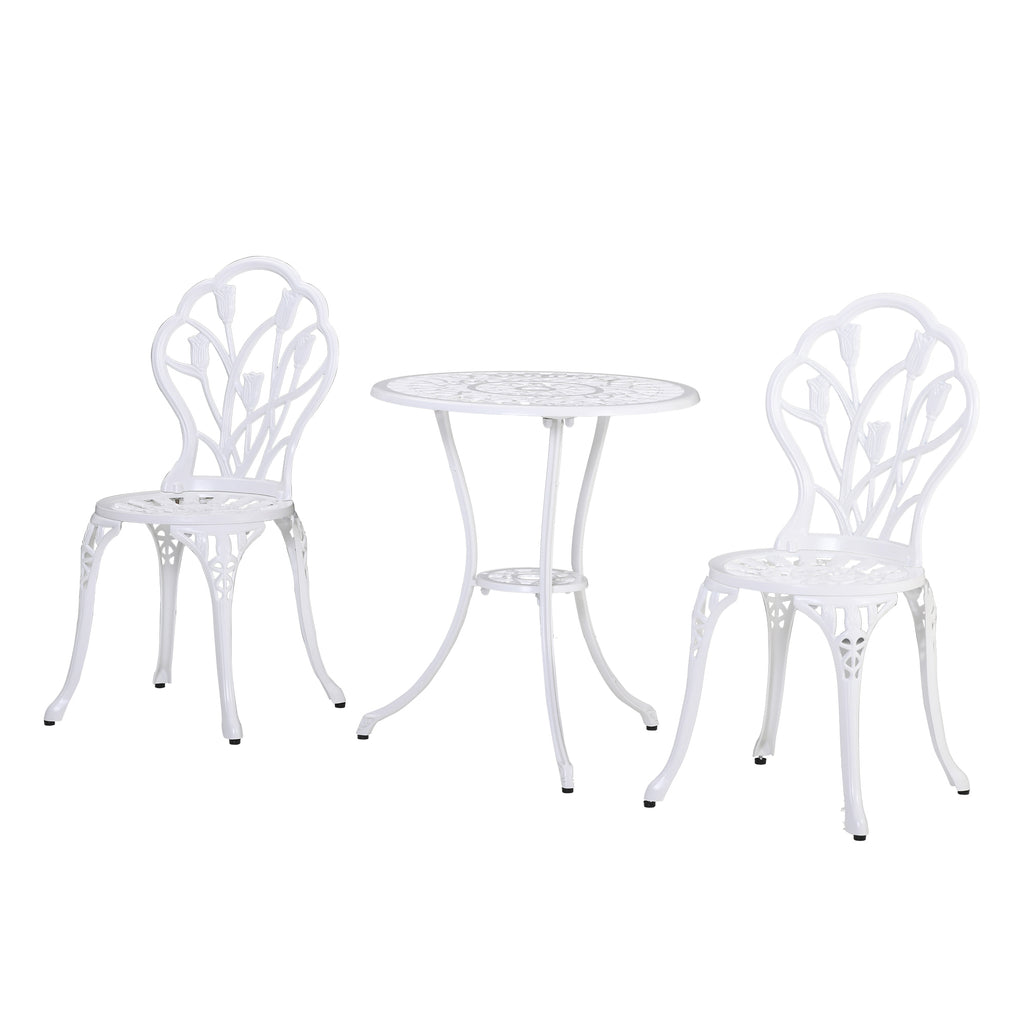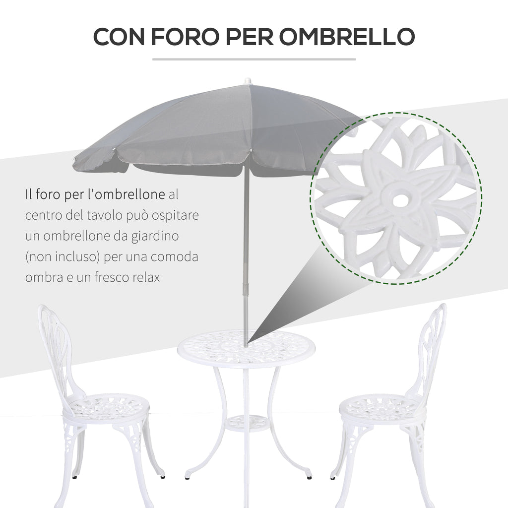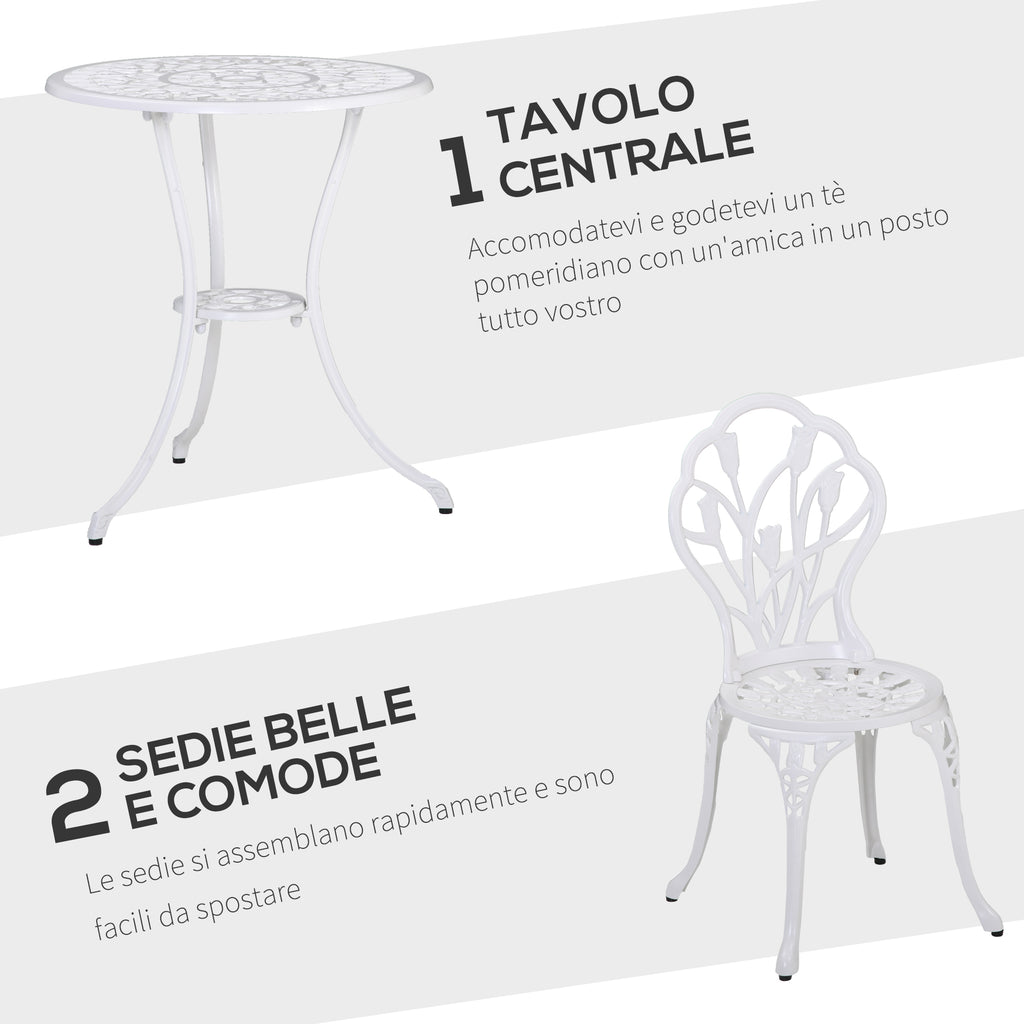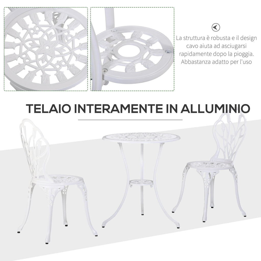 Set Tavolino e 2 Sedie da Giardino in Alluminio Bianco