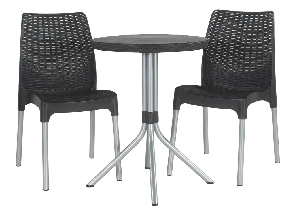 Set Tavolino e 2 Sedie da Giardino in Metallo e Resina Keter Chelsea Lounge Antracite
