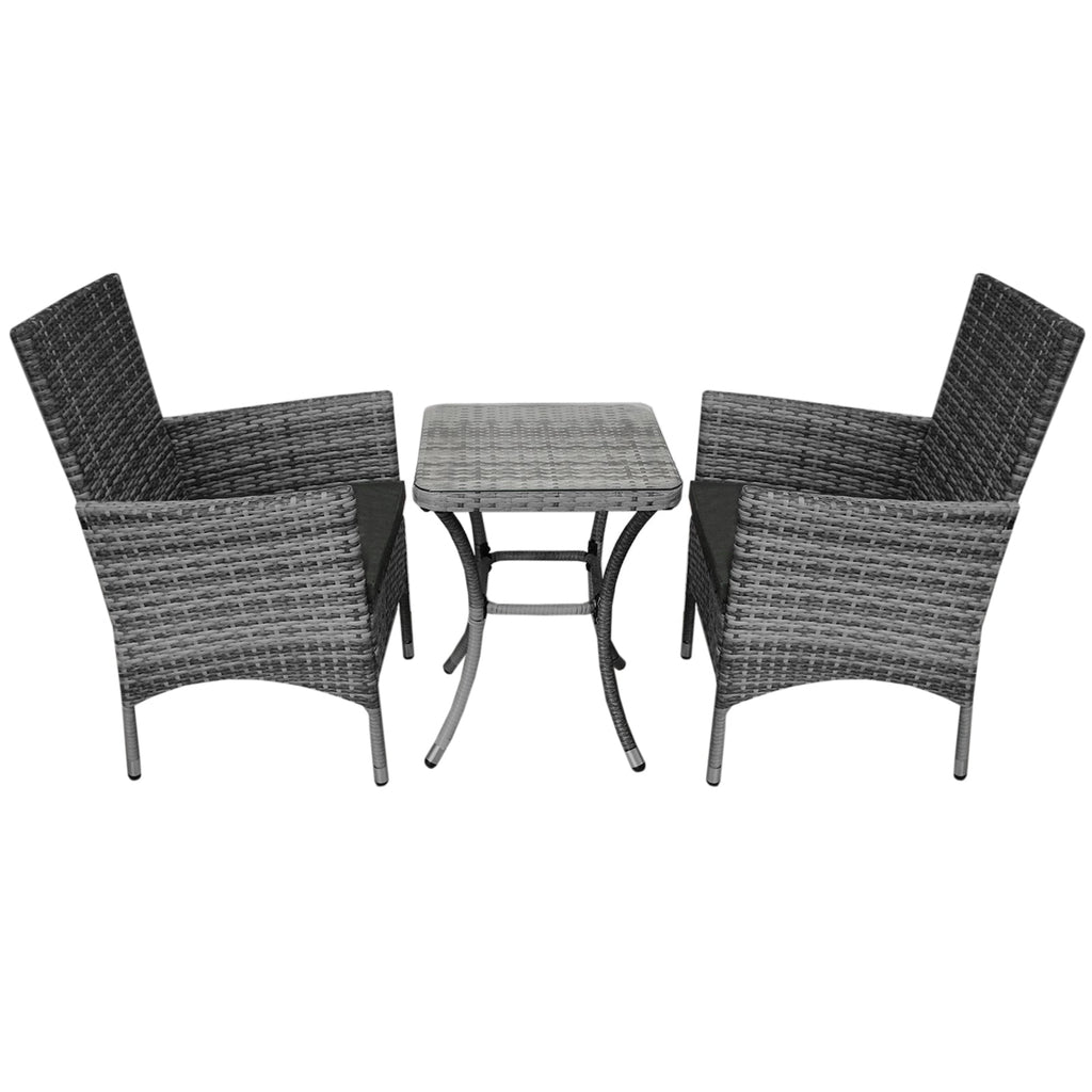 Set Tavolino e 2 Sedie da Giardino Set Bistrò in Rattan Vimini e Vetro Grigio
