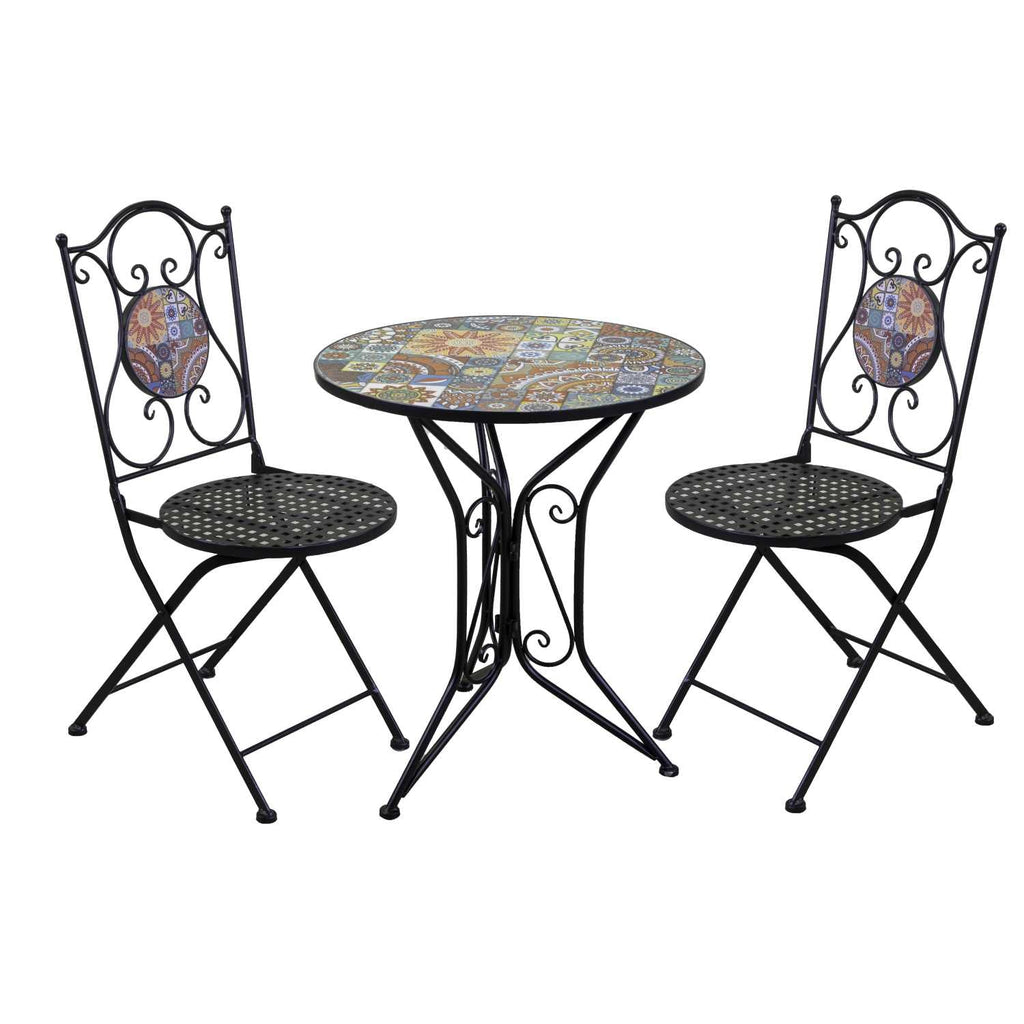 Set Tavolino e 2 Sedie Ø60xh71 cm in Metallo con Mosaico Galatone Nero
