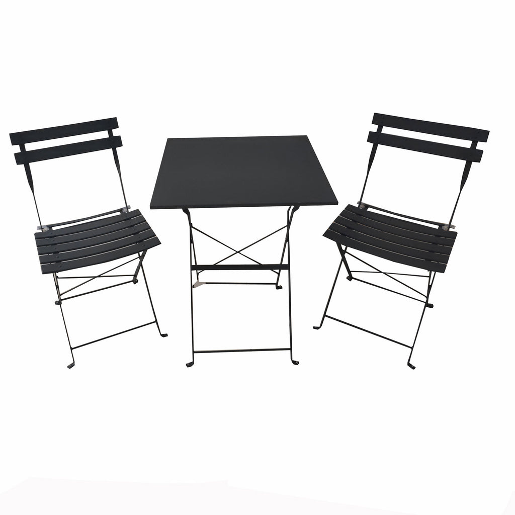 Set Tavolino e 2 Sedie Pieghevole 55x55x70 cm in Ferro Nero