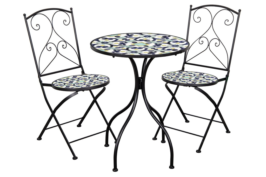 Set Tavolino e 2 Sedie Pieghevoli da Giardino con Mosaico