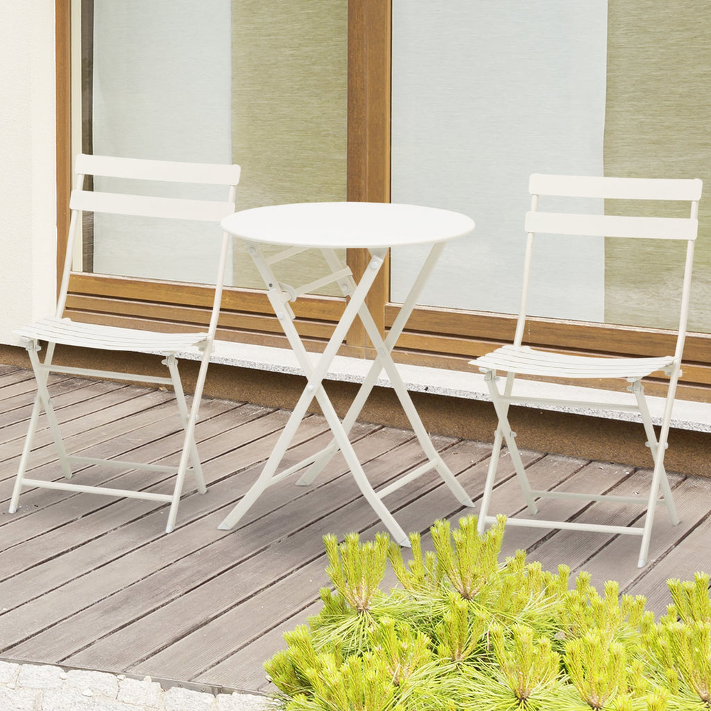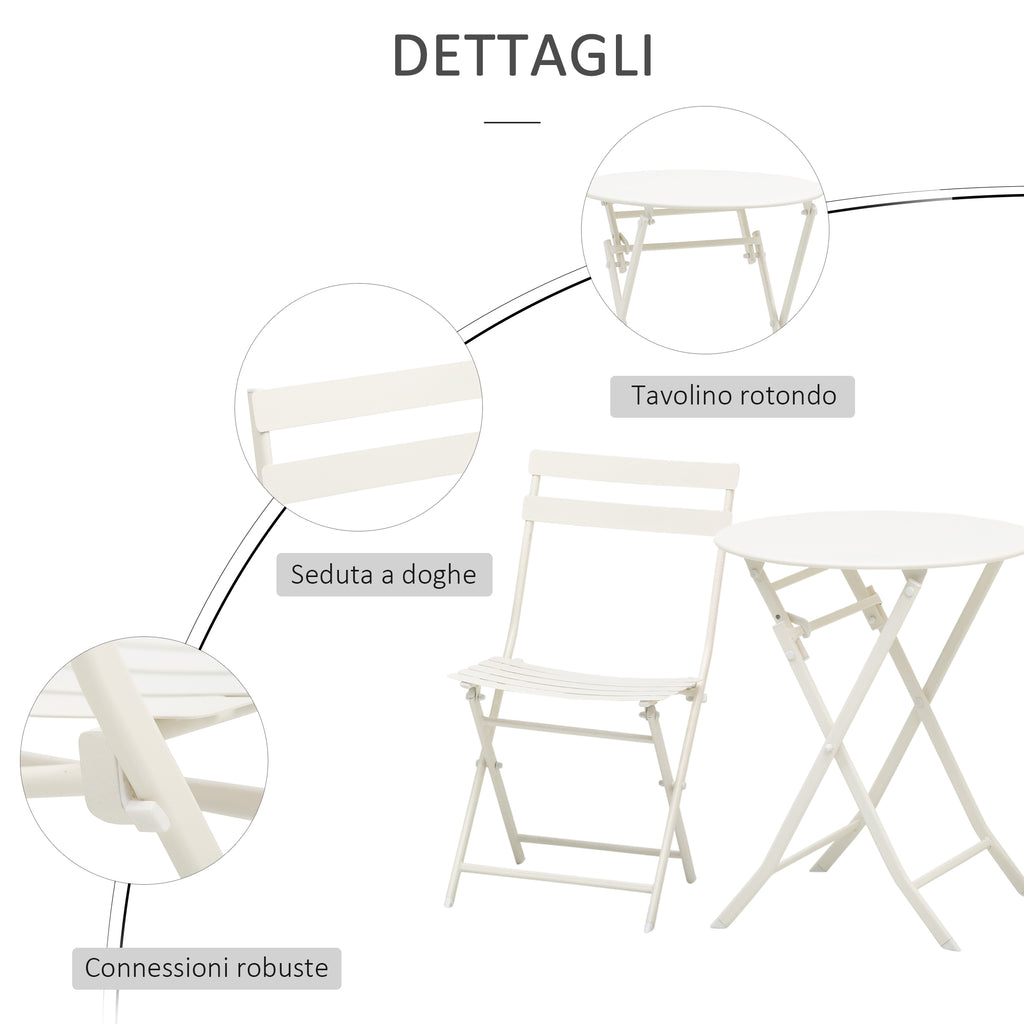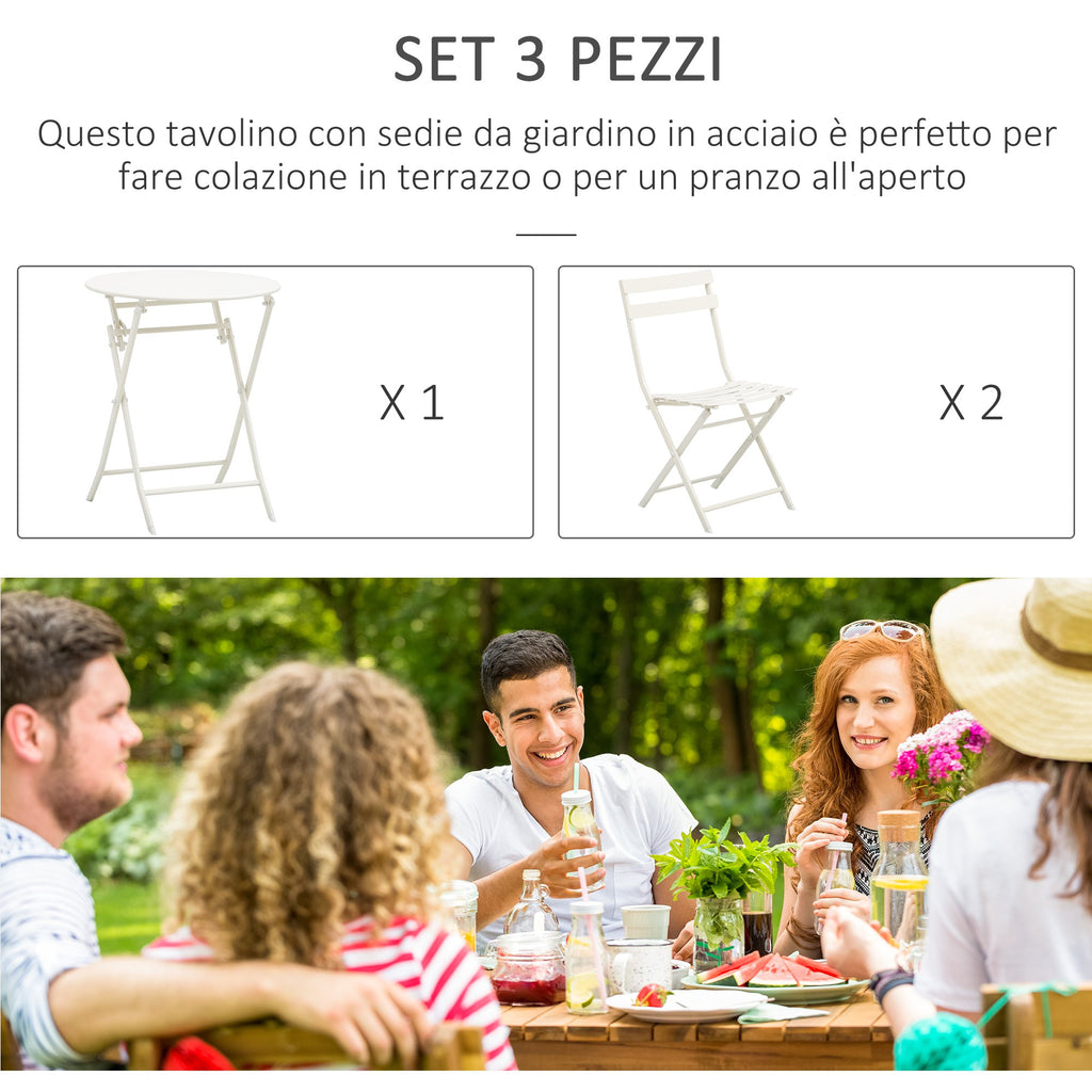 Set Tavolino e 2 Sedie Pieghevoli da Giardino in Acciaio Bianco