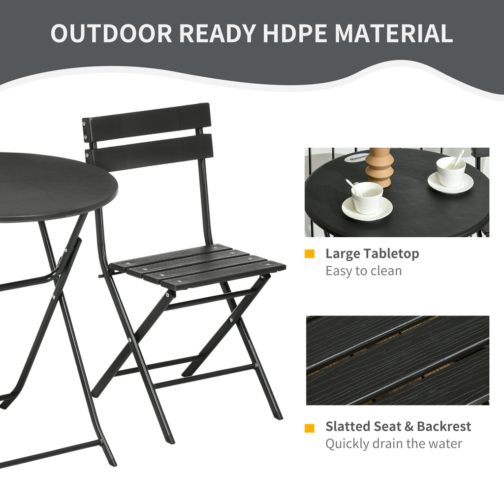 Set Tavolino e 2 Sedie Pieghevoli da Giardino in Acciaio e HDPE Grigio Scuro