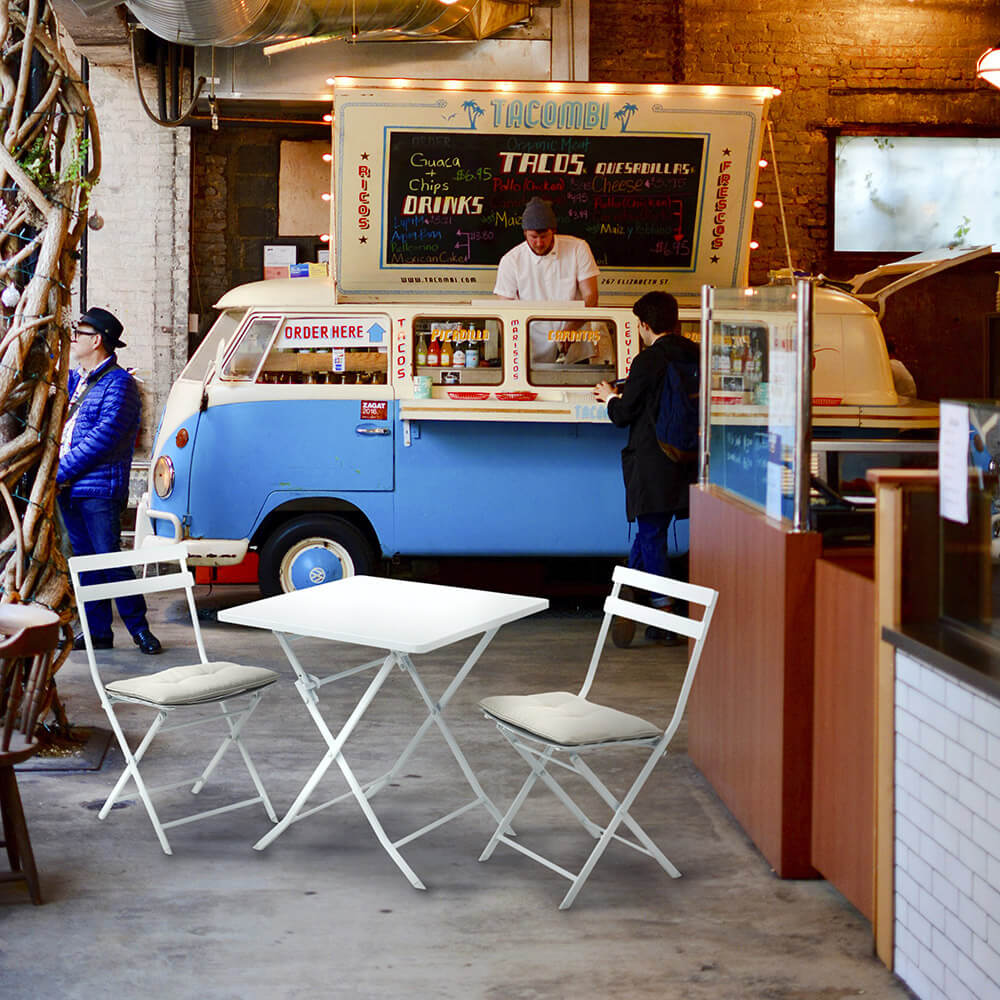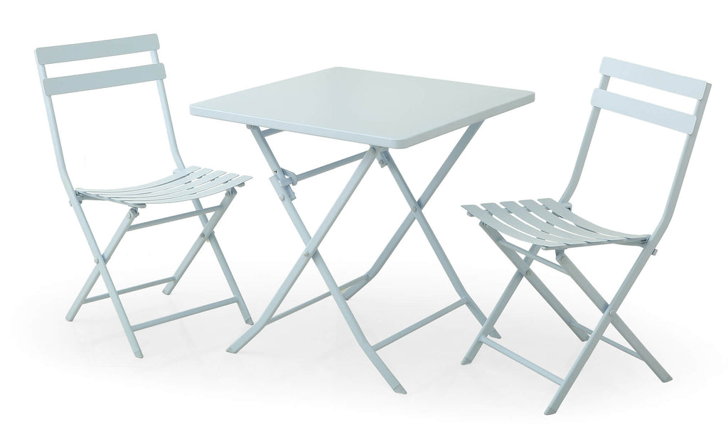Set Tavolino e 2 Sedie Pieghevoli da Giardino in Acciaio Kraus Tiziano Celeste Chiaro