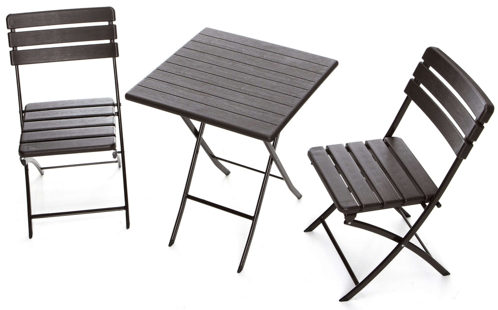 Set Tavolino e 2 Sedie Pieghevoli da Giardino in Ferro Taddei Plastik Wood Marrone Scuro