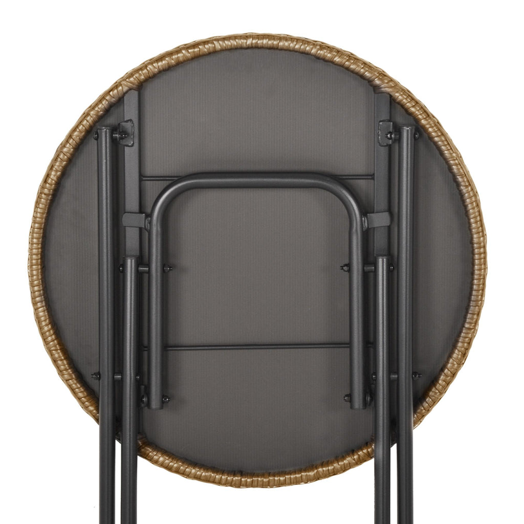 Set Tavolino e 2 Sedie Pieghevoli da Giardino in Rattan e Acciaio