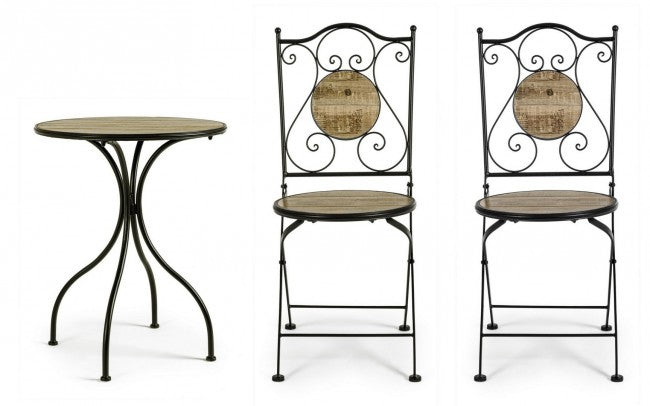 Set Tavolino e 2 Sedie Pieghevoli da Giardino Kansas in Metallo