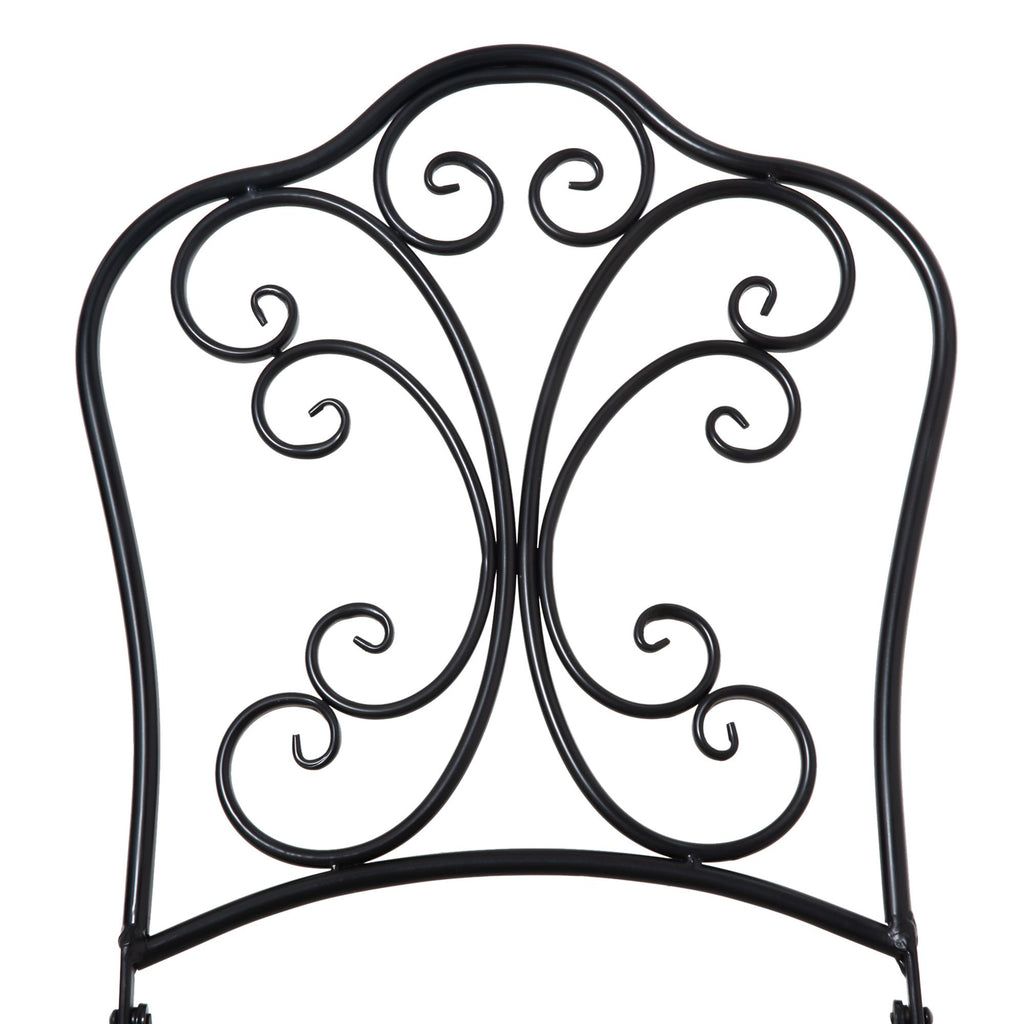 Set Tavolino e 2 Sedie Pieghevoli in Ceramica e Metallo Nero