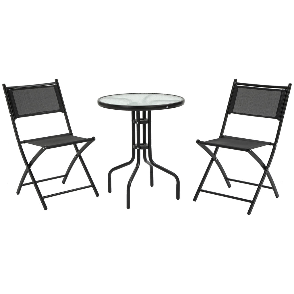 Set Tavolino e 2 Sedie Pieghevoli in Metallo Nero