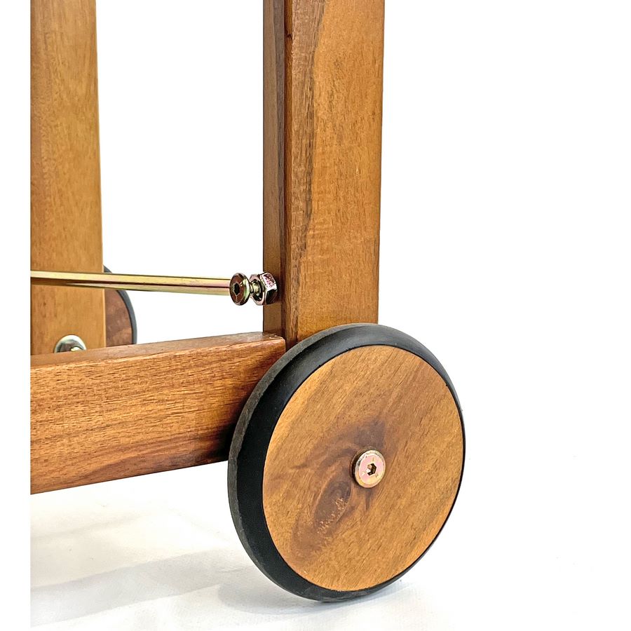 L'intera struttura del set esterno è in legno, con doghe su schienale e sedute delle sedie, così come sul piano del tavolo; dando a tutto il set l'aspetto caldo ed elegante di un tavolo e sedie da giardino in legno.