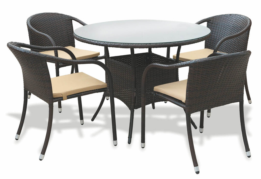 Set Tavolo + 4 Sedie da Giardino in Polyrattan Soriani Milo Marrone