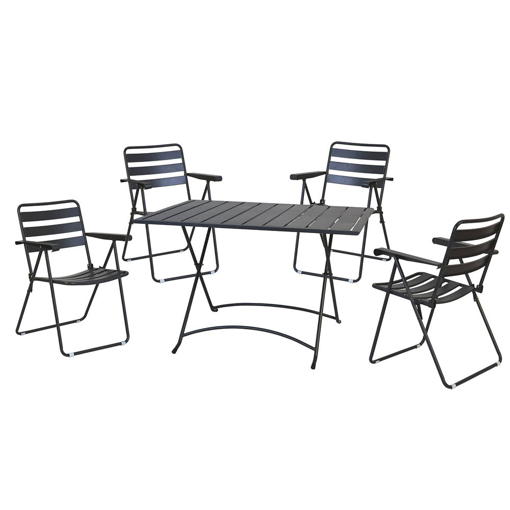 Set Tavolo + 4 Sedie Pieghevoli in Acciaio Verniciato Antracite Salotto Mery
