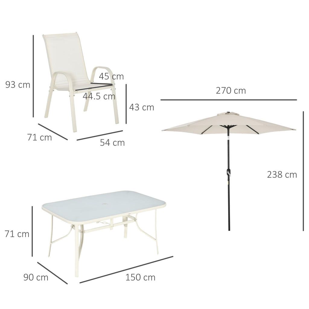 Set Tavolo 6 Sedie e Ombrellone da Giardino in Metallo e Poliestere Bianco