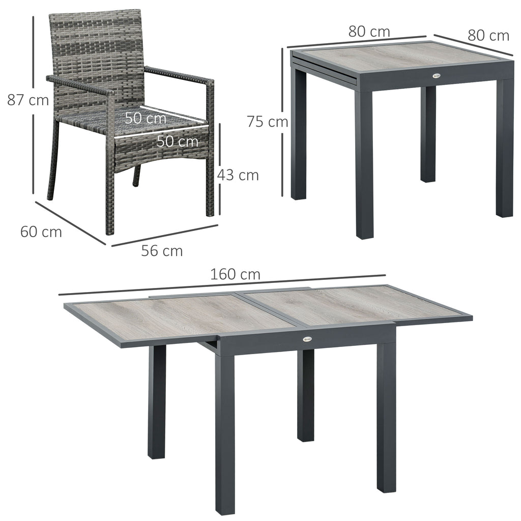 Rilassati all'aperto in compagnia con questo salotto da giardino . Composto da un tavolo allungabile e 6 sedie, ti offre tutto lo spazio che ti serve per accogliere i tuoi ospiti. Il tavolo ha un robusto telaio in alluminio e piano del tavolo in plastica con effetto legno. Le sedie con telaio in acciaio, sono rivestite in rattan PE e sono dotate di un comodo cuscino di seduta. Questo set è l'aggiunta perfetta ai tuoi spazi esterni.