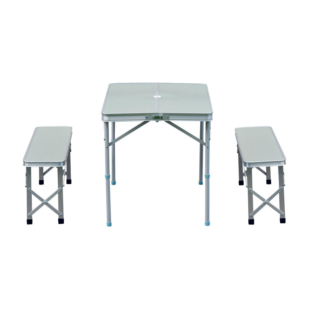 Set Tavolo da Campeggio Picnic 2 Panche Pieghevole in Alluminio Argento