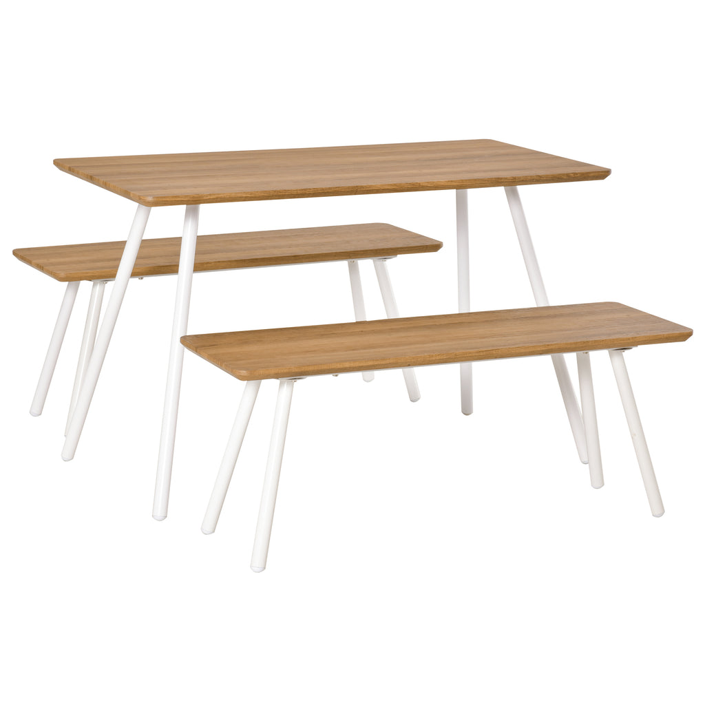 Set Tavolo da Pranzo con 2 Panche in MDF e Metallo Bianco
