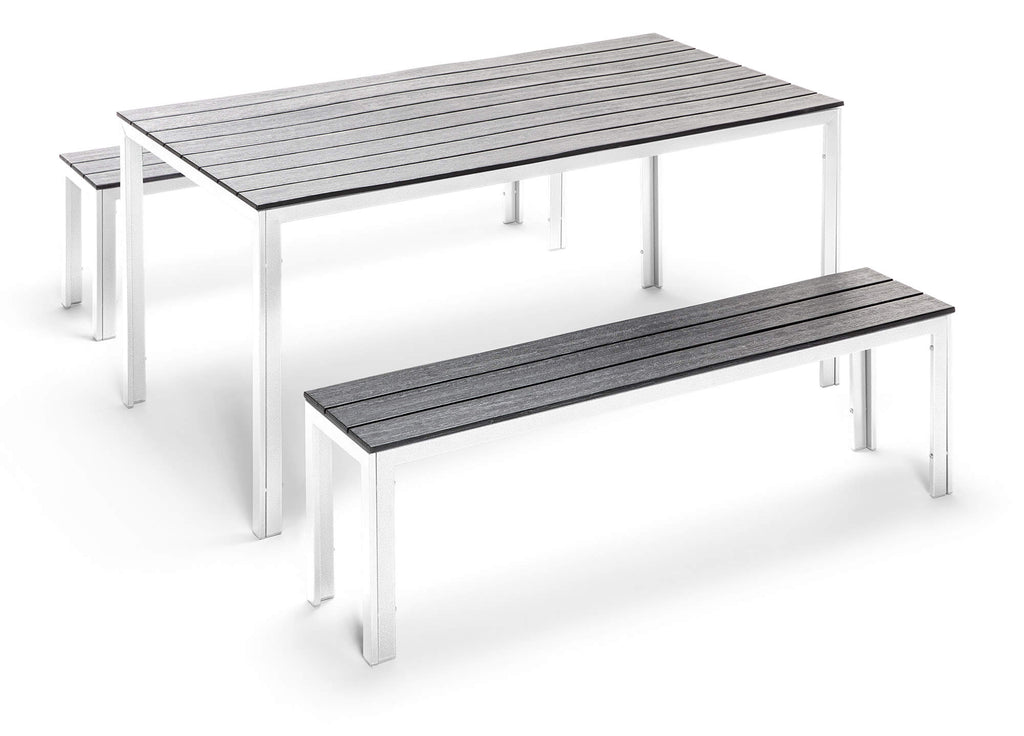 Set Tavolo e 2 Panche da Giardino in Acciaio e Polietilene Grigio