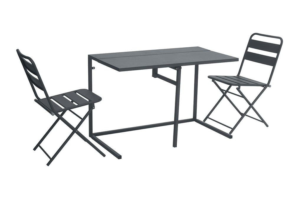 Set Tavolo e 2 Sedie da Balcone Pieghevoli in Ferro Nero