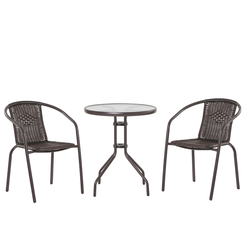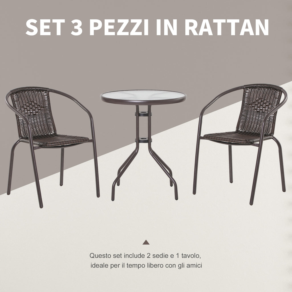 Set Tavolo e 2 Sedie da Giardino in Acciaio e Rattan Marrone