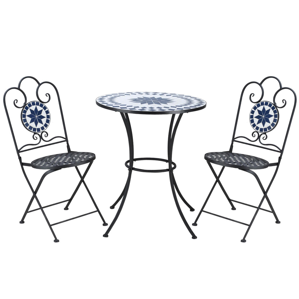 Goditi il tuo spazio esterno con questo set da giardino a tre pezzi di . I motivi floreali a mosaico aggiungono un tocco di stile al tuo giardino, balcone, cortile e altro ancora. Grazie alla seduta rotonda e al comodo schienale, ti sentirai a tuo agio mentre ti gusti un tè pomeridiano. Quando non devono essere utilizzate, le due bellissime sedie possono essere ripiegate e riposte facilmente. Questo moderno set con tavolo e sedie da giardino sarà un'ottima aggiunta al tuo relax.