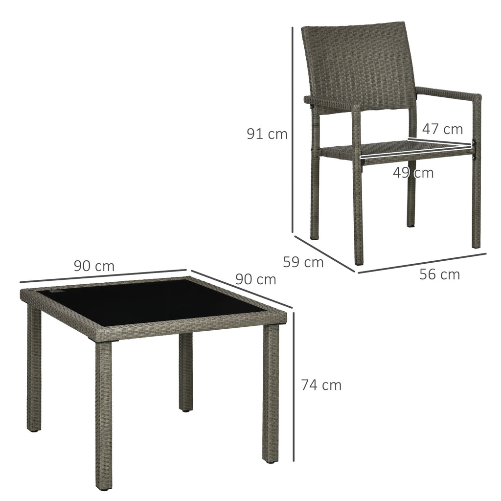 Set Tavolo e 4 Sedie da Giardino in Rattan PE Grigio