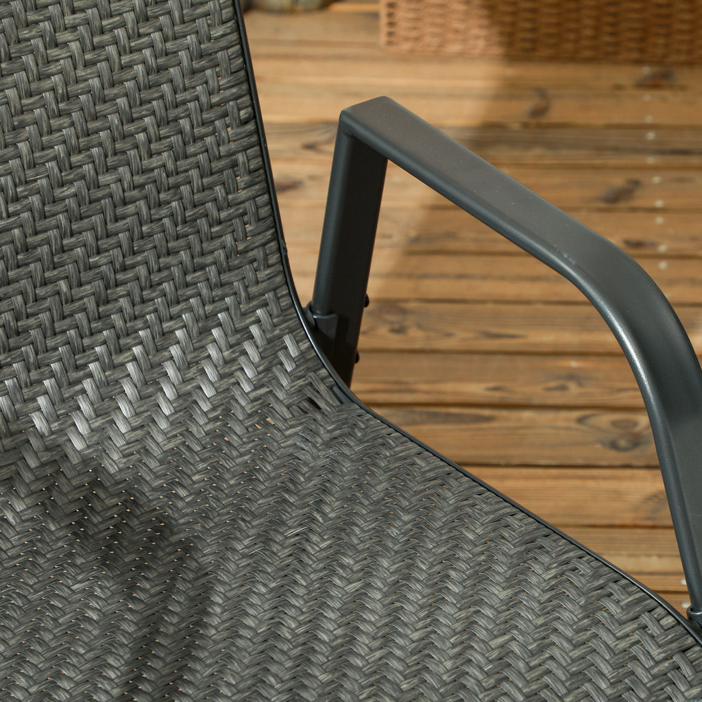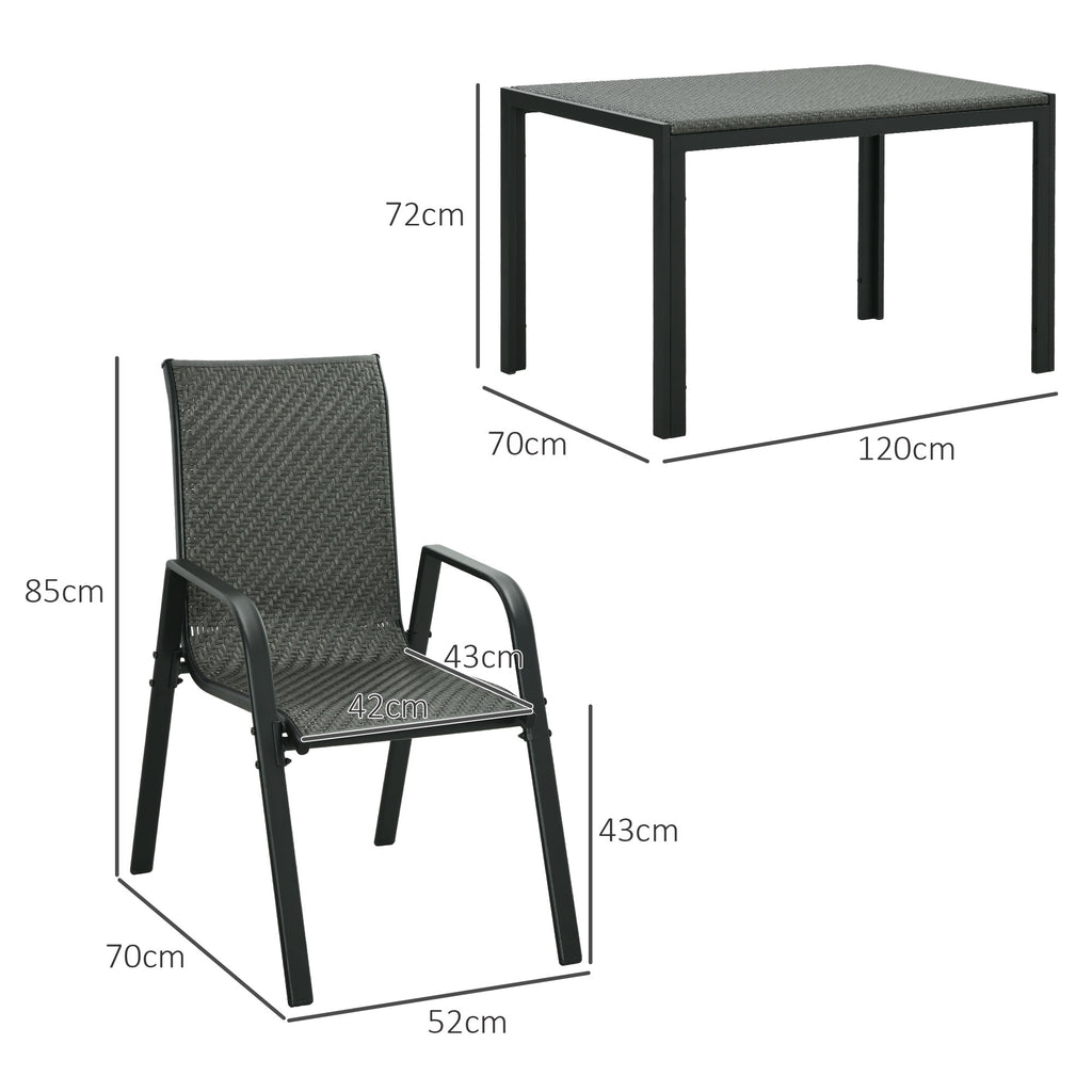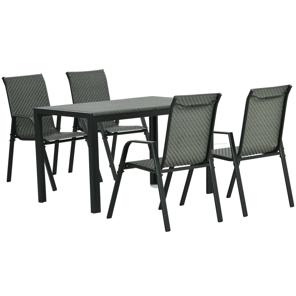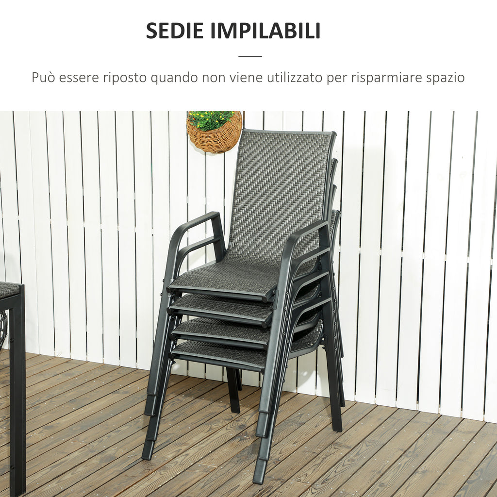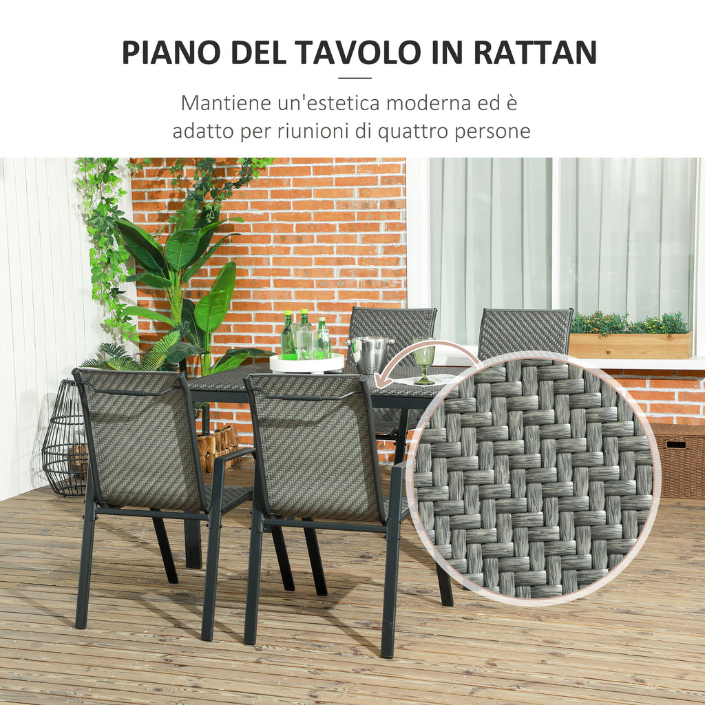 Set Tavolo e 4 Sedie Impilabili da Giardino in Acciaio e Rattan PE Grigio