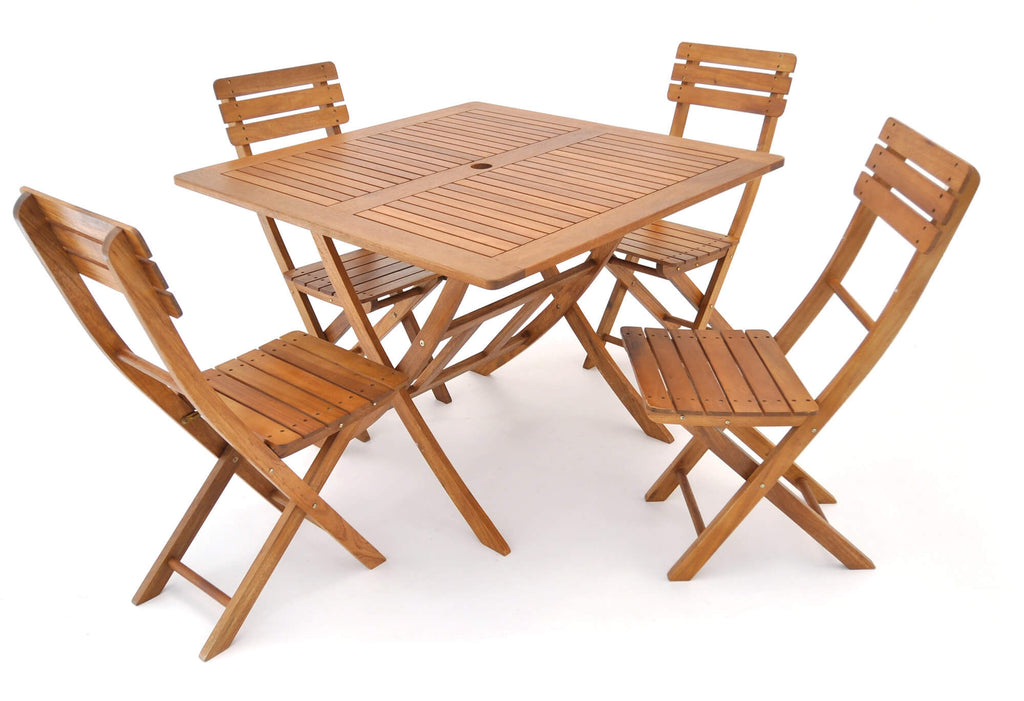 Set Tavolo e 4 Sedie Pieghevoli da Giardino in Legno