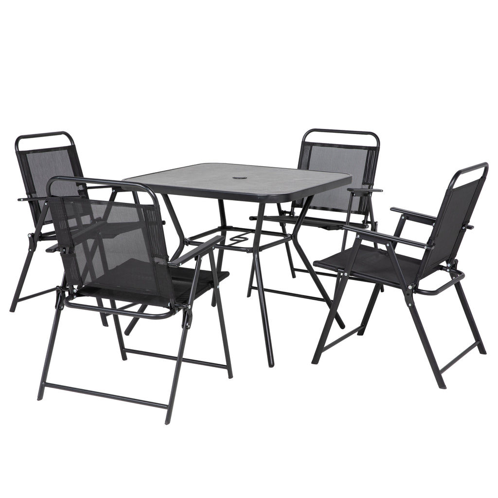 Set Tavolo e 4 Sedie Pieghevoli da Giardino Nero