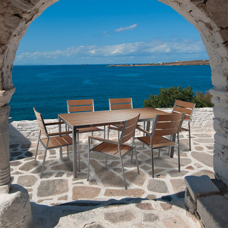 Set Tavolo e 6 Sedie da Giardino in Acciaio e Sumpar Wood Kraus Donatello