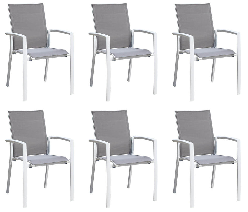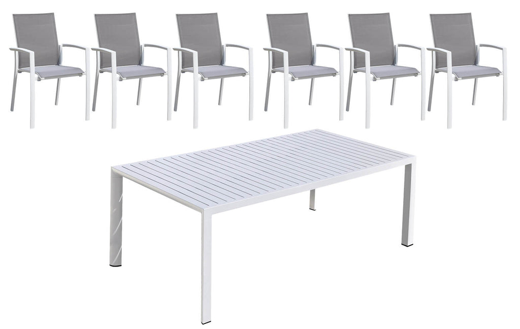 Set Tavolo e 6 Sedie da Giardino in Alluminio e Textilene Bianco