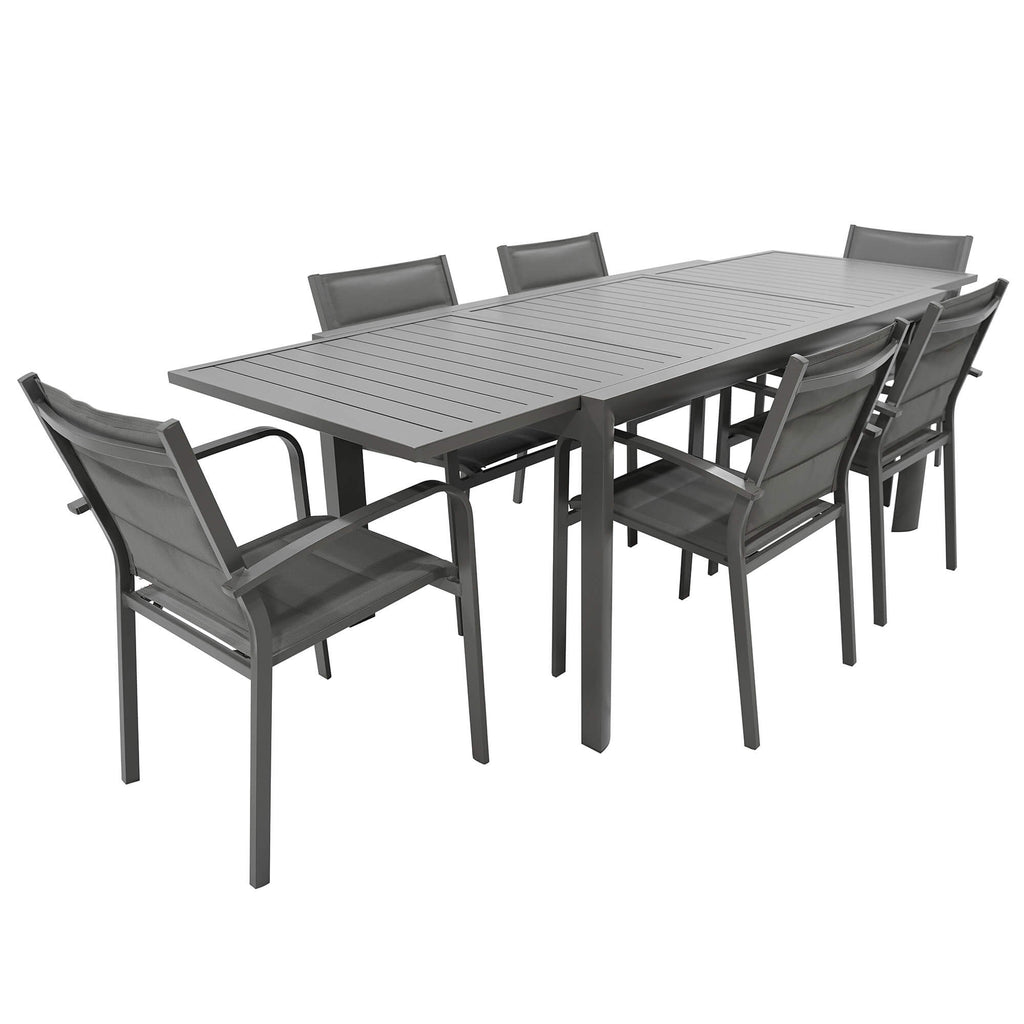 Set Tavolo e 6 Sedie da Giardino in Alluminio e Textilene Taupe