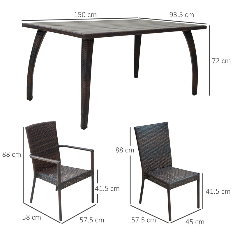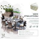 Set Tavolo e 6 Sedie da giardino in Legno e Rattan con Cuscini Marrone