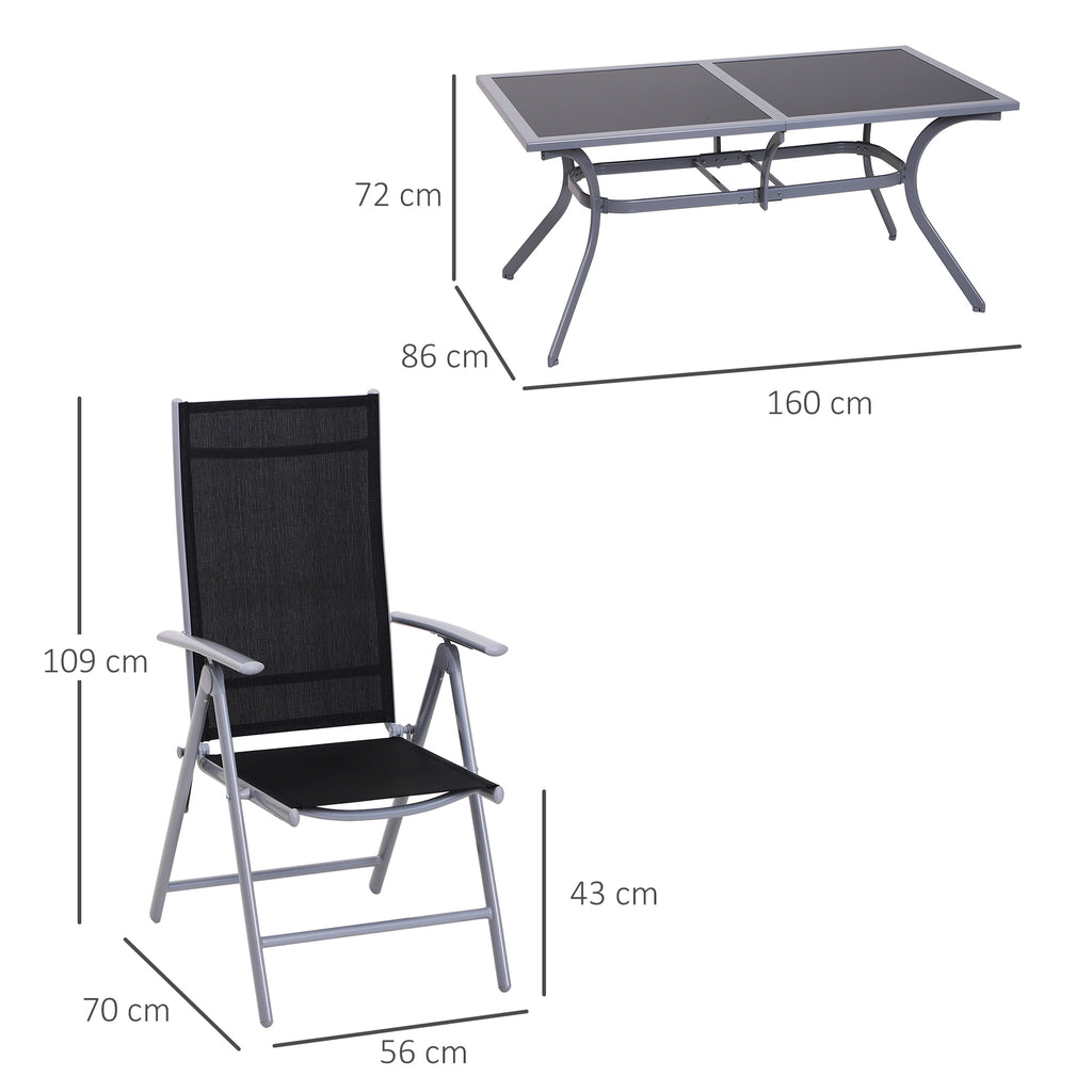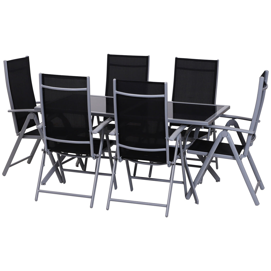 Set da Giardino Tavolo e 6 Sedie Pieghevoli in Ferro e Tessuto di Texilene