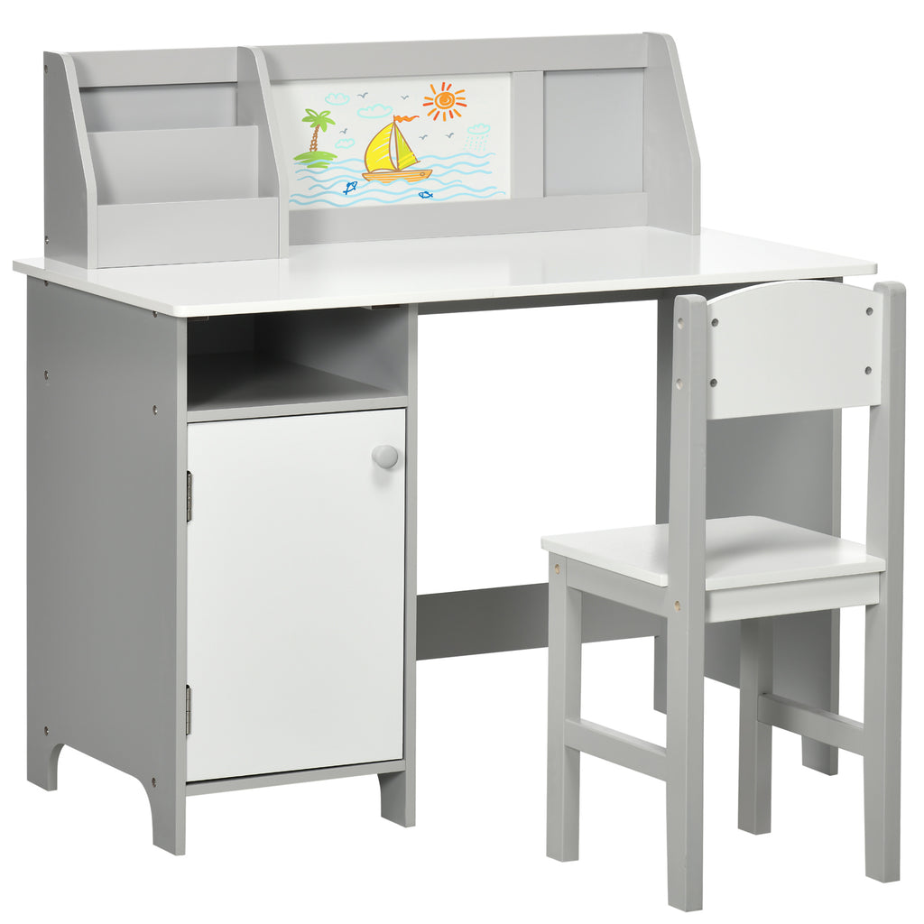 Set Tavolo e Sedie per Bambini 5+ Anni 90x45x 85 cm in Legno Bianco e Grigio