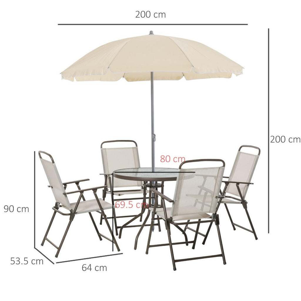 Set Tavolo Ombrellone e 2 Sedie Pieghevoli in Acciaio Crema